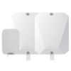 - Kit formado por: un panel hibrido FIBRA-HUBHYBRID-W, un expansor de zonas cableadas FIBRA-MULTITRANSMITTER-W y un teclado FIBRA-KEYPAD-W