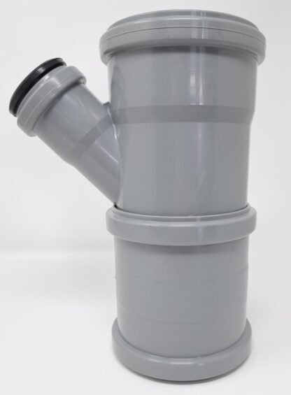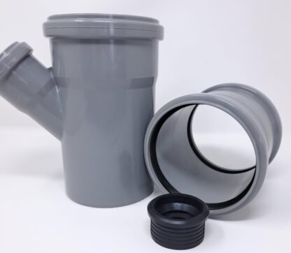 Quality 110 mm PVC Grey Push-Fit Branch for Soil Pipe with a 45 degree 50 mm or 40 mm with provided adaptor and a 110 mm push fit slip coupler for easy retrofit Installation In to an existing soil stak